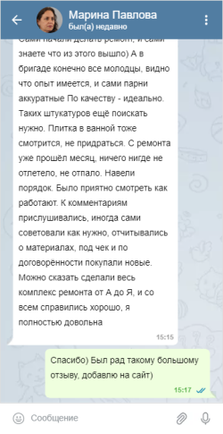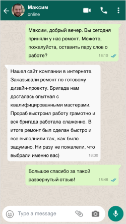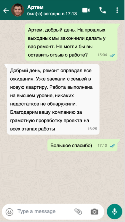 Организация занимается ремонтом офисов, коттеджей, квартир, дач. Осуществляем любые виды ремонтных работ в помещении. Многие заказчики, которые обращались в нашу компанию, оставили положительные отзывы, они размещены на сайте. У нас представлены фотографии интерьеров для ознакомления клиентов. Мастера выполнили больше 1000 заказов качественно и в срок.