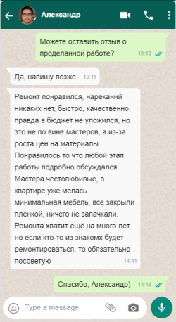 После подписания договора приступаем к ремонту. Длительность капитального ремонта составляет двадцать дней, а косметического пять. Срок работы зависит от площади помещения и его особенностей.